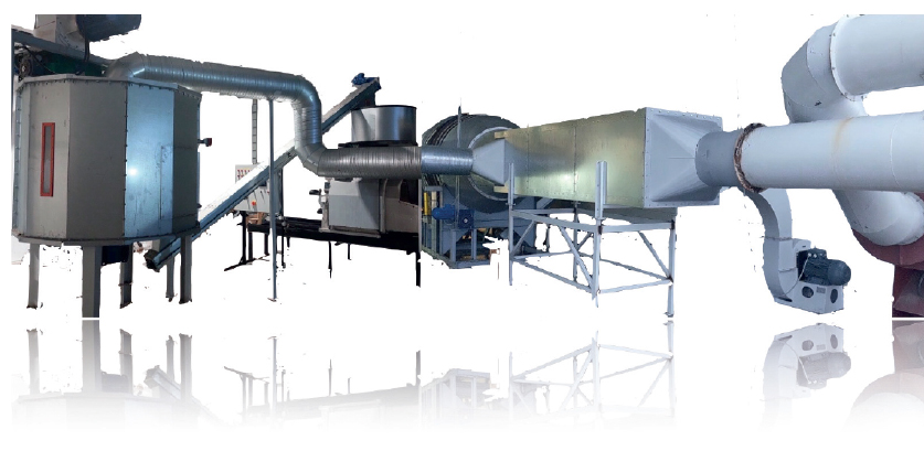 Wymiennik ciepła jest zainstalowany wewnątrz bębna suszarni i jest na grzewany spalinami z pieca na biomasę.