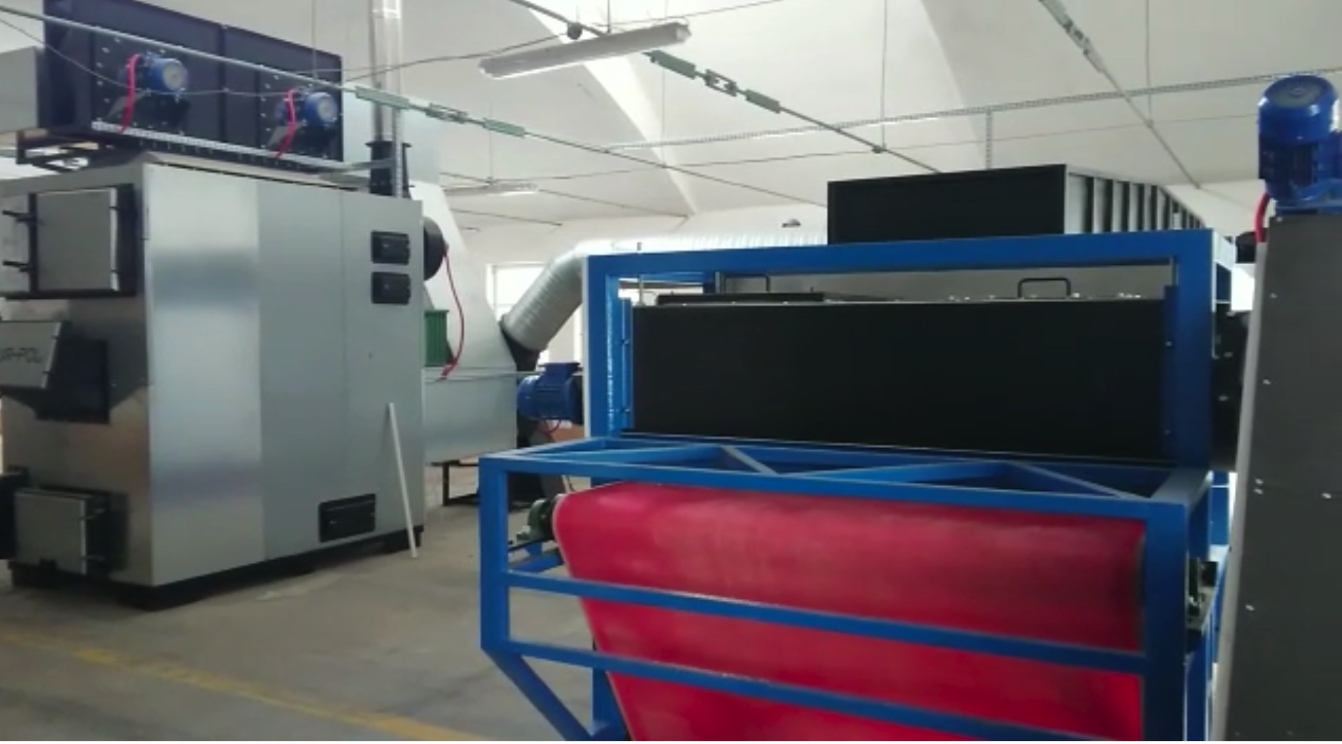 Wymiennik ciepła jest zainstalowany wewnątrz bębna suszarni i jest na grzewany spalinami z pieca na biomasę.
